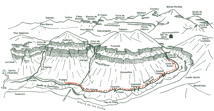 Siempre he hecho excursiones sencillas, pero últimamente, necesitaba más. Me encontraba ociosa, fuerte y motivada. Del cielo y de la mano de mi familia me vino esta gran ocasión: desde Gabarnié (Francia) ir a la Brecha de Rolando (2.840 m), la Gruta Helada de Casterets, acampar a las puertas del refugio de Goriz (2.200 m), al día siguiente coronar el Monte Perdido (3.355 m) y volver a la pradera (1.310 m).